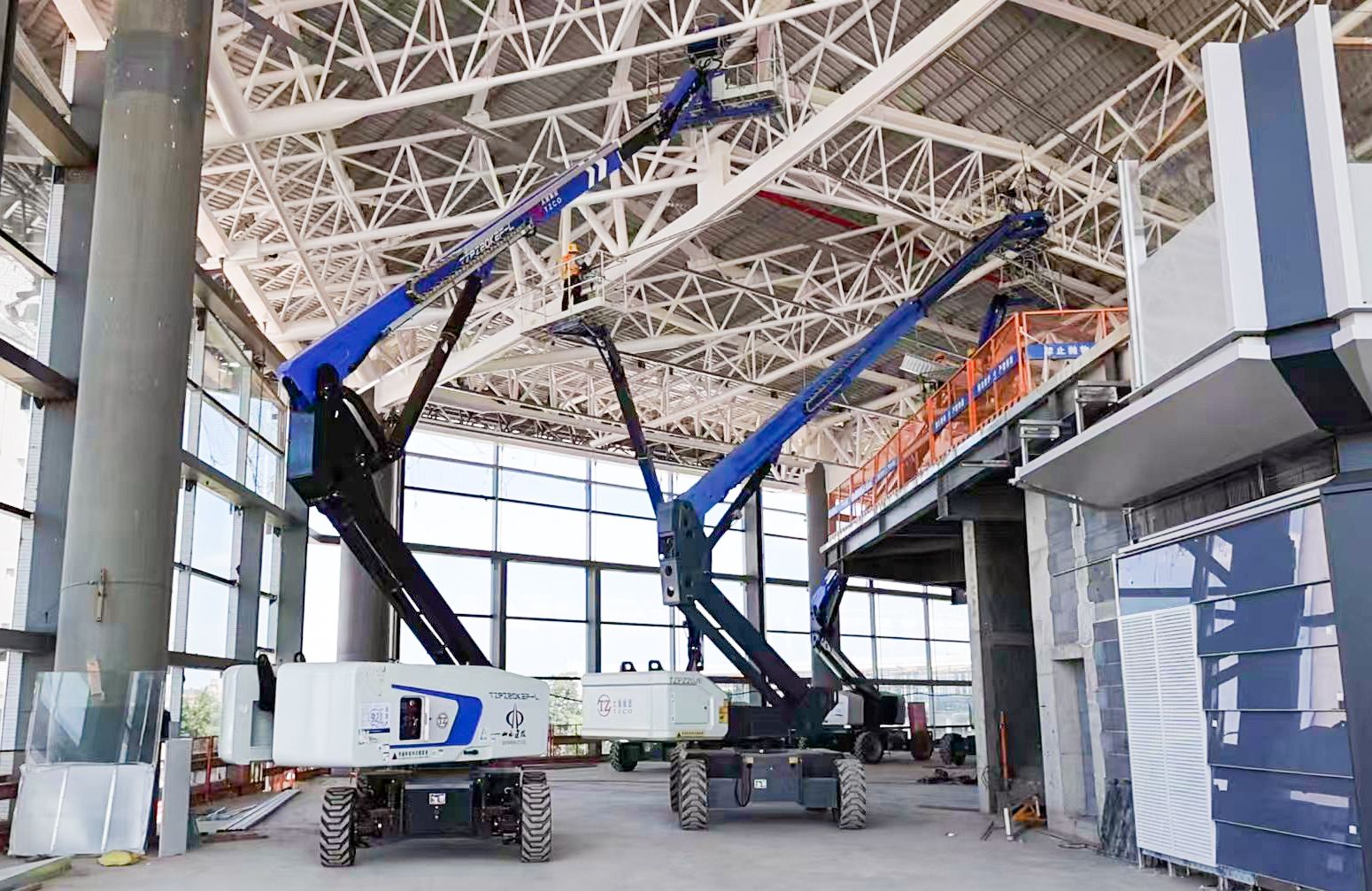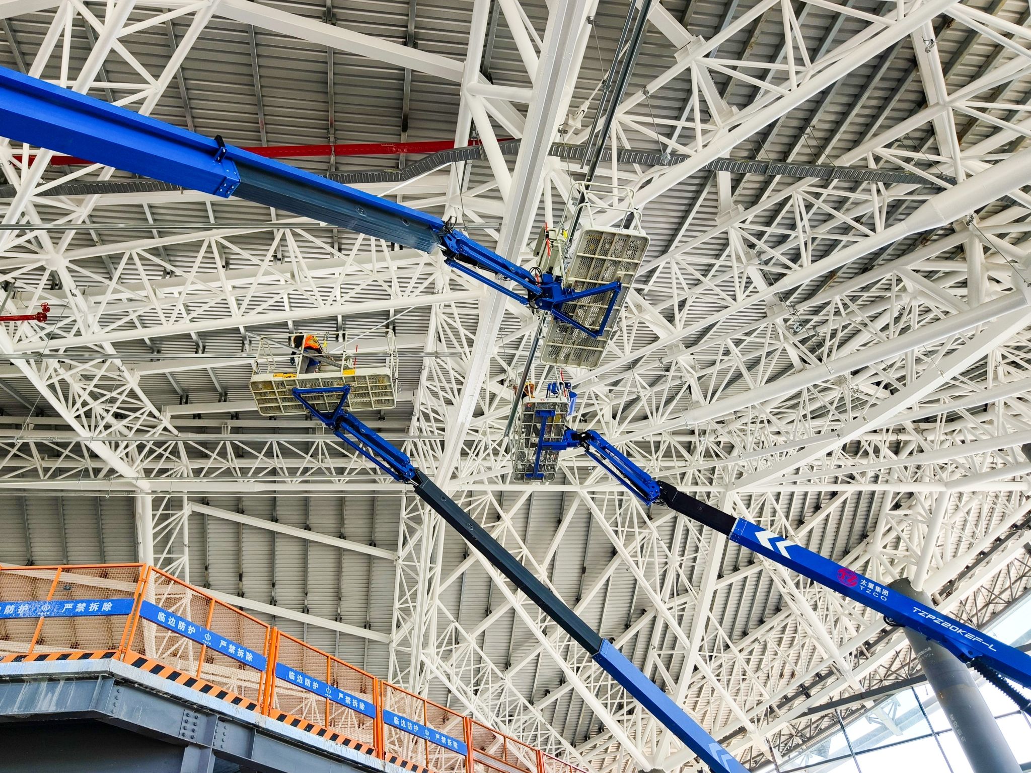 試飛成功的同時(shí),武宿機(jī)場T3航站樓建設(shè)也在穩(wěn)步推進(jìn),60余臺(tái)印著“TZ”標(biāo)識(shí)的高空作業(yè)平臺(tái)已成為這里的“建設(shè)主力”,在東、西、中指廊區(qū)域有序作業(yè)。
